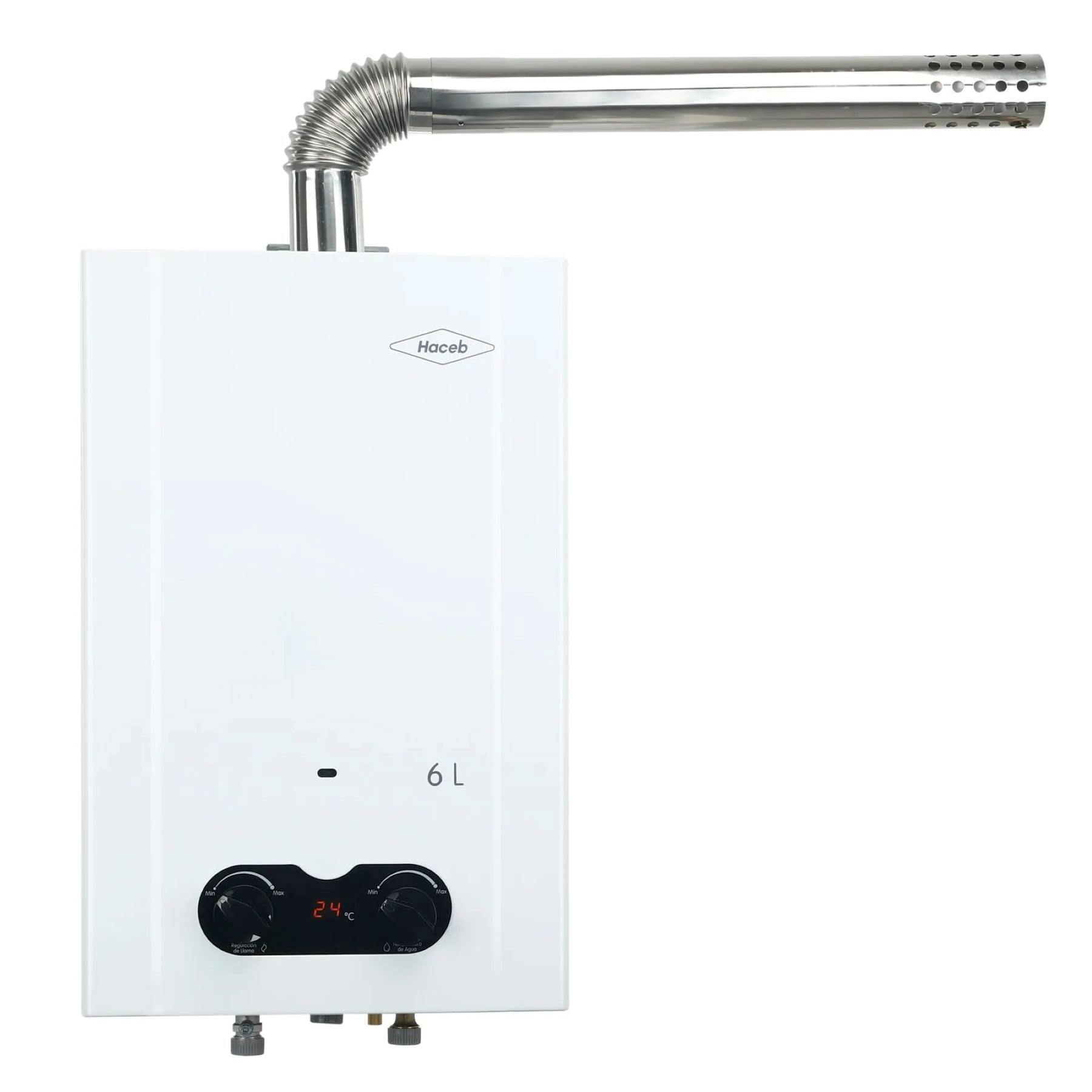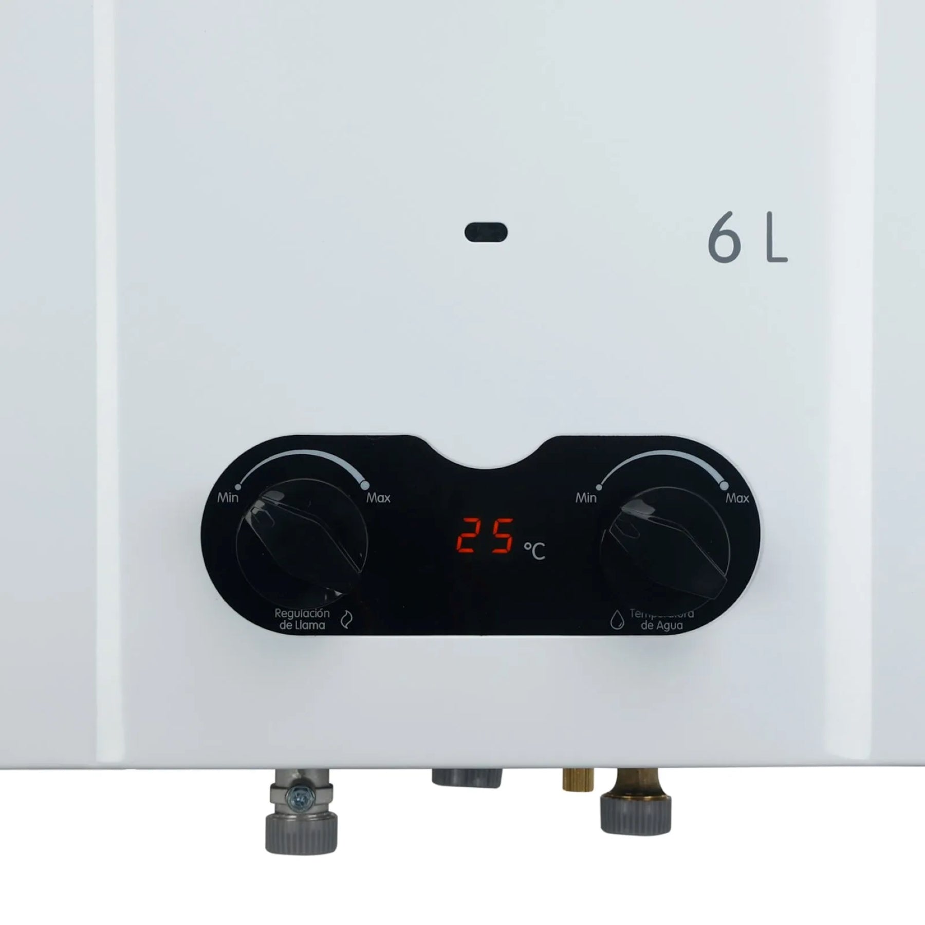 Calentador de agua, paso a gas natural, capacidad de 6 Lts por minuto, tiro forzado, temperatura regulable y Display indicador para visualizar la temperatura de salida del agua e información de funcionamiento. Operación automática, perillas de fácil manejo para controlar la temperatura del agua y el ahorro del gas, además cuenta con visor de llama para observar el funcionamiento del quemador, con sistema de seguridad y temporizador que apaga el calentador luego de 20 minutos de uso continuo. Incluye ducto de evacuación y requiere toma eléctrica con polo a tierra, el ducto puede ir directo al exterior.