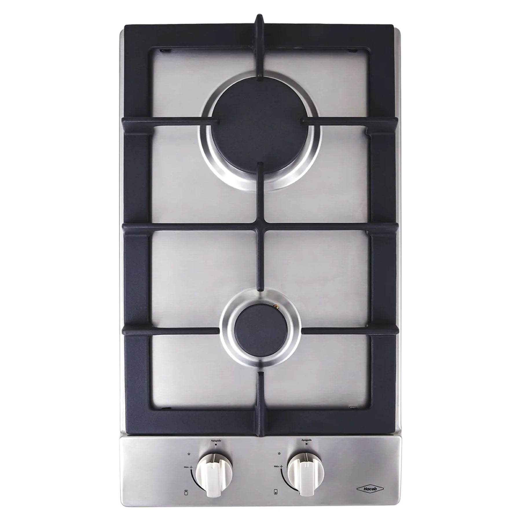 Estufa de empotrar a gas en acero inoxidable de 30 cm de ancho que cuenta con 2 fogones en diferentes tamaños que se acomodan a los diámetros de tus ollas y pesos de tus preparaciones. Su diseño seguro incluye un sistema de termoseguridad que ante la ausencia de llama, interrumpe automáticamente el flujo de gas. Además, cuenta con parrillas de hierro fundido que proporcionan estabilidad y seguridad durante la cocción. La zona antiderrames se convierte en un aliado eficaz para mantener la estufa impecable, impidiendo que los líquidos se infiltren en el interior del mueble y facilitando así la tarea de limpieza.