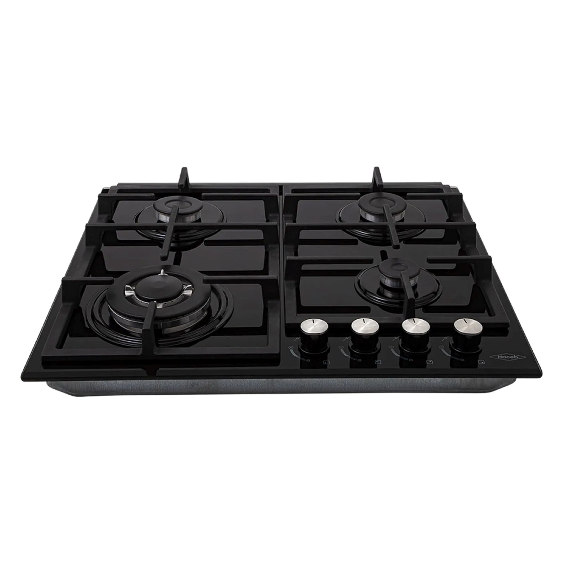 Estufa de empotrar Olivo a gas en cristal de 60x51 cm.Con 4 fogones de diferentes tamaños que se acomodan a los diámetros de tus ollas y peso de tus preparaciones. Parrillas continuas en hierro fundido que te brindan estabilidad, seguridad en la cocción y movimiento fluido de los recipientes. Tapas quemadoras con total recubrimiento que hace que tenga una mejor combustión. Quemador triple corona para diferentes preparaciones en menor tiempo.