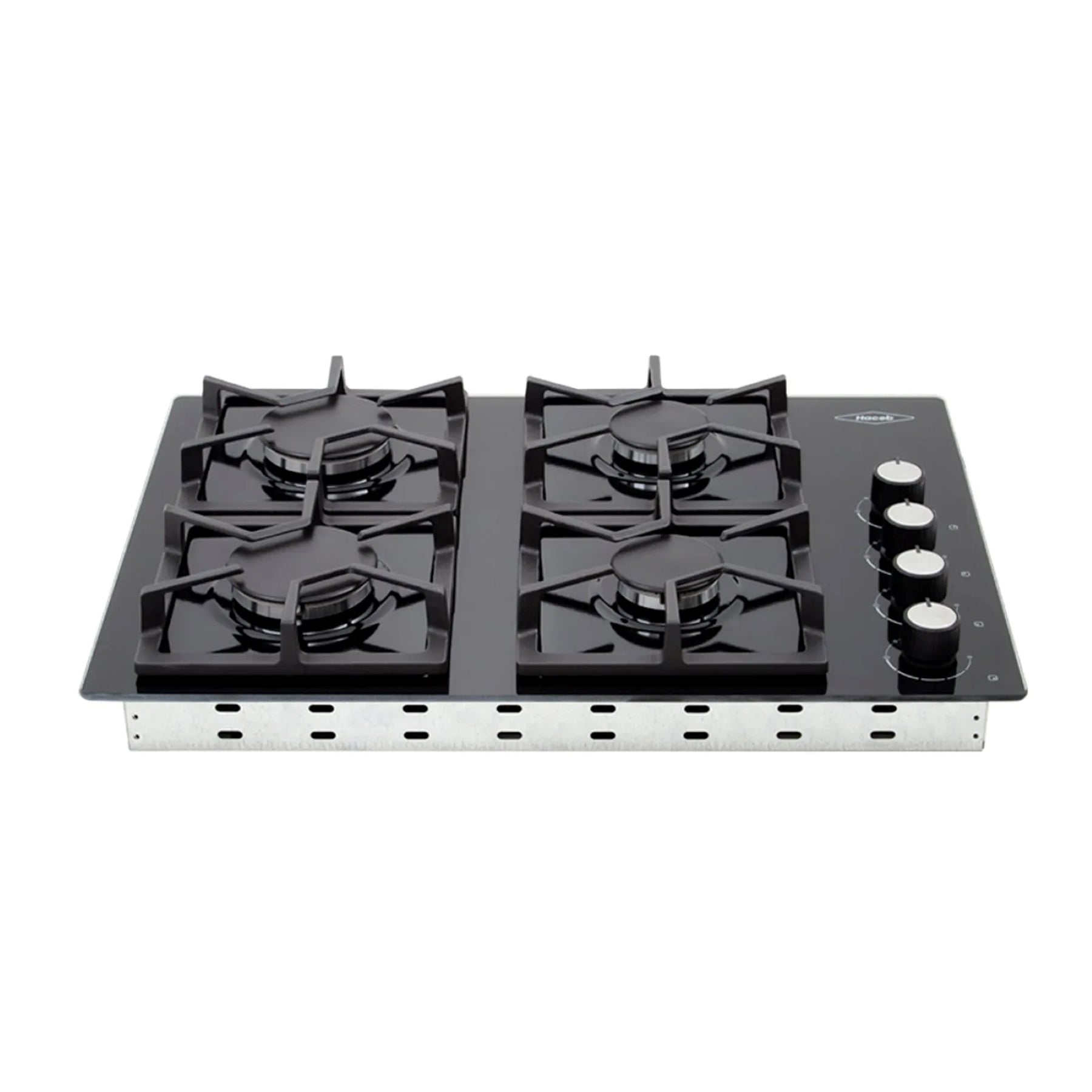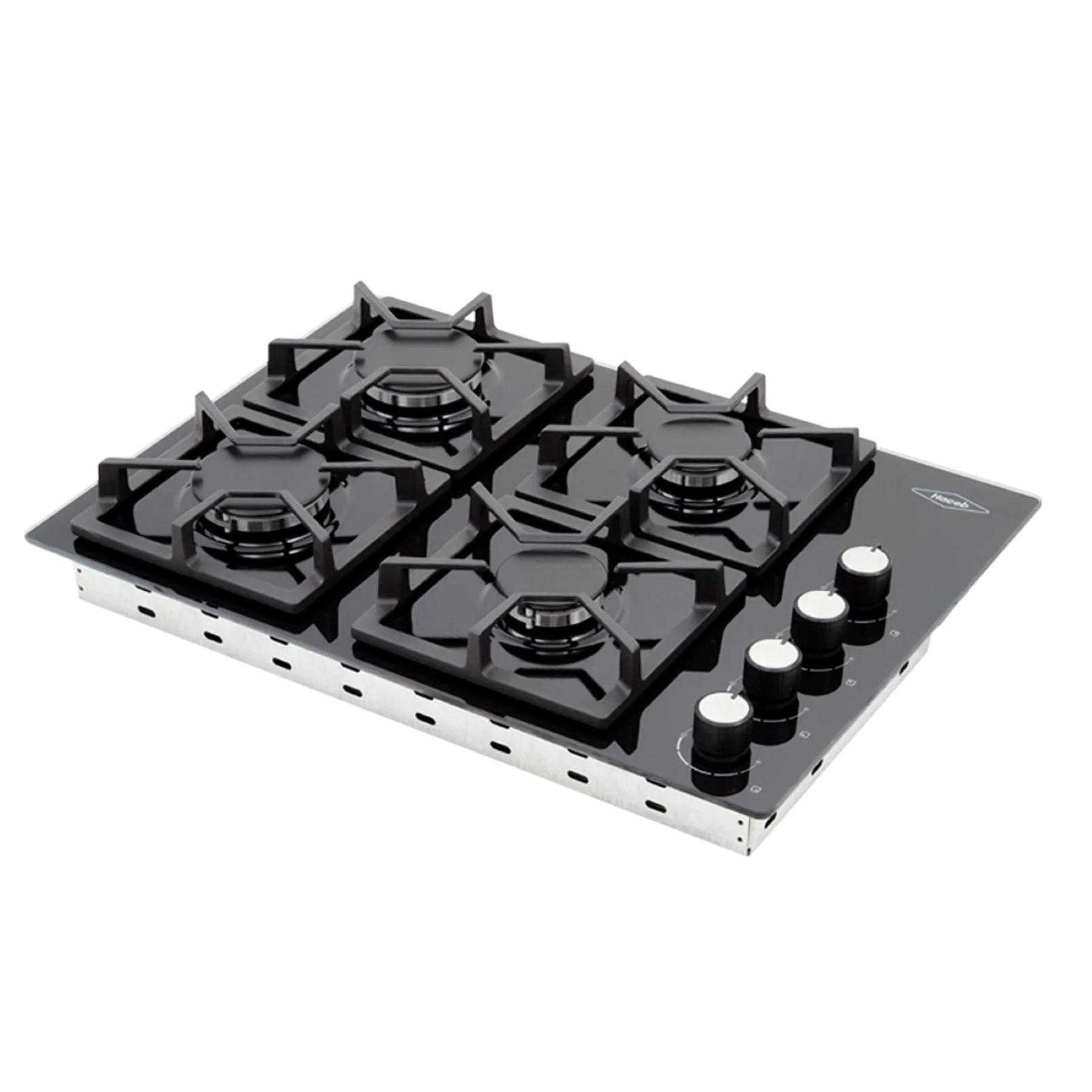 Estufa de empotrar Tandoori a gas en cristal de 60X43 cm. Cuenta con fogones en diferentes tamaños que se acomodan a los diámetros de tus ollas y peso de tus preparaciones. Parrillas en hierro fundido con diseño en fractales que te brindan estabilidad y seguridad en la cocción y encendido automático (basta con girar la perilla) . Tandoori es de muy fácil limpieza gracias a su superficie lisa y sus perillas removibles. Línea de cocinas Haceb; recetas deliciosas, en su punto y en menos tiempo.