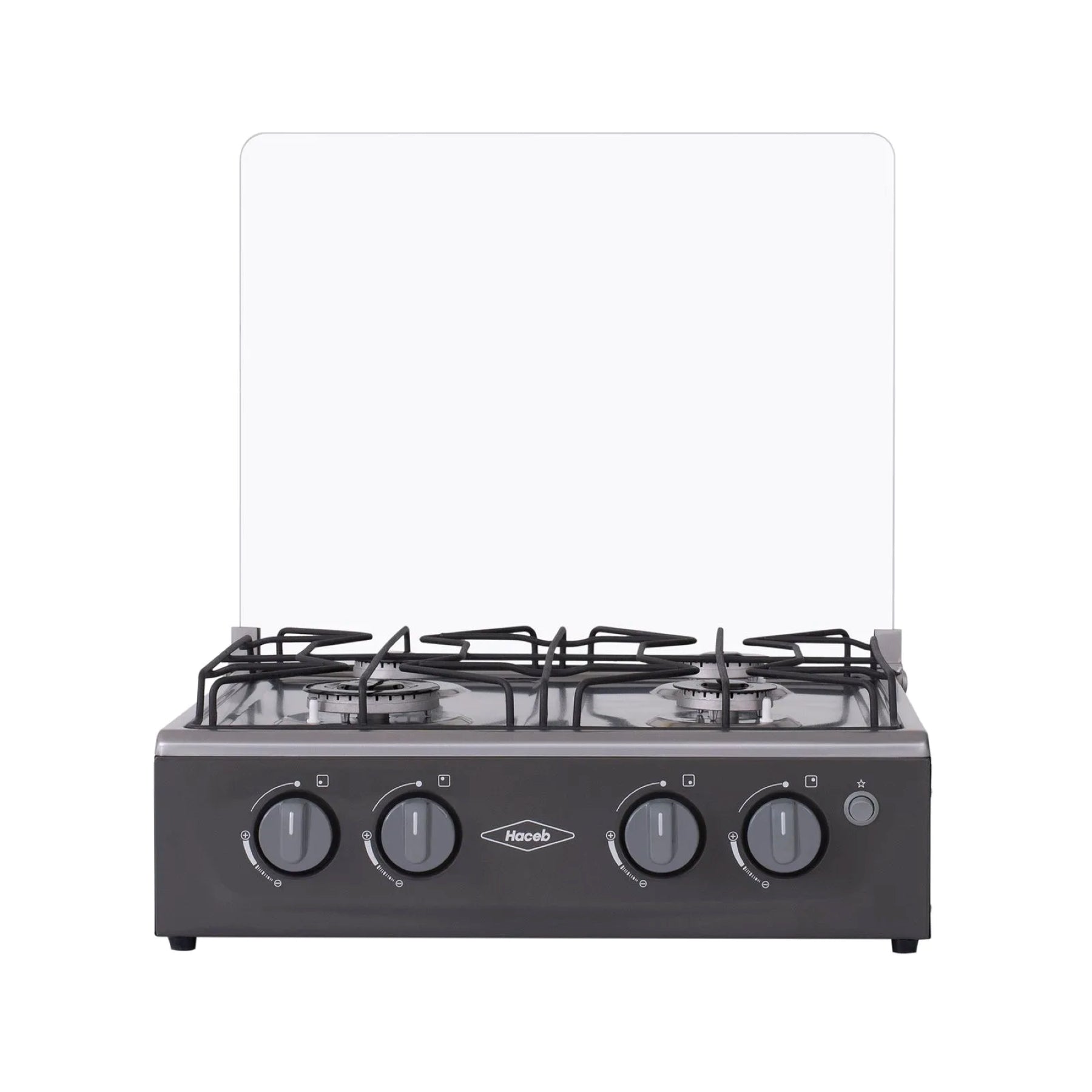 Estufa de mesa en acero inoxidable con gran espacio de trabajo, fuentes de calor de diferentes tamaños con encendido eléctrico y vidrio superior templado que protege la pared de salpicaduras. Su parrilla única en alambrón con puntos de apoyo óptimos brinda estabilidad, seguridad y alta eficiencia. Cuenta con perillas ergonómicas, con diseño único y fáciles de manejar.
