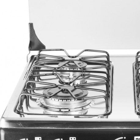 Estufa Abba de moderno diseño recto, mesa firme en acero inoxidable, horno a gas con protección termoeléctrica para total seguridad en su manipulación y práctico encendido electrónico para cocinar fácilmente, ricos alimentos.