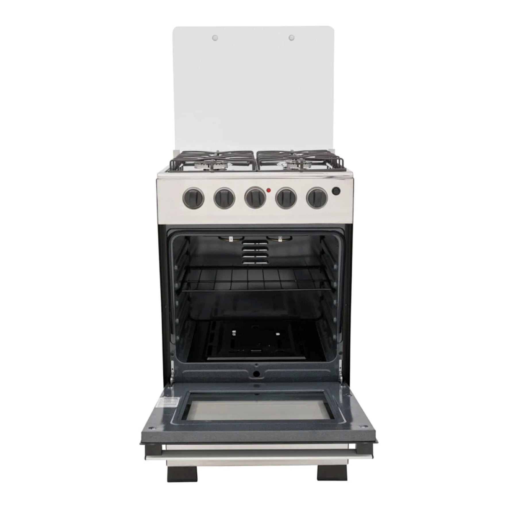 Una Estufa con acabados brillantes que hará lucir tus espacios amplios, 50 cms de ancho, puerta del horno con visor amplio, parrillas en platina antideslizante y fogones de diferentes tamaños. El horno ofrece un gran espacio interior y varios niveles de ubicación del entrepaño para que cocines lo que quieras y des el toque dorado al final usando el gratinador eléctrico. Además, cocina seguro evitando la fugas de gas en el horno y el sobrecalentamiento.