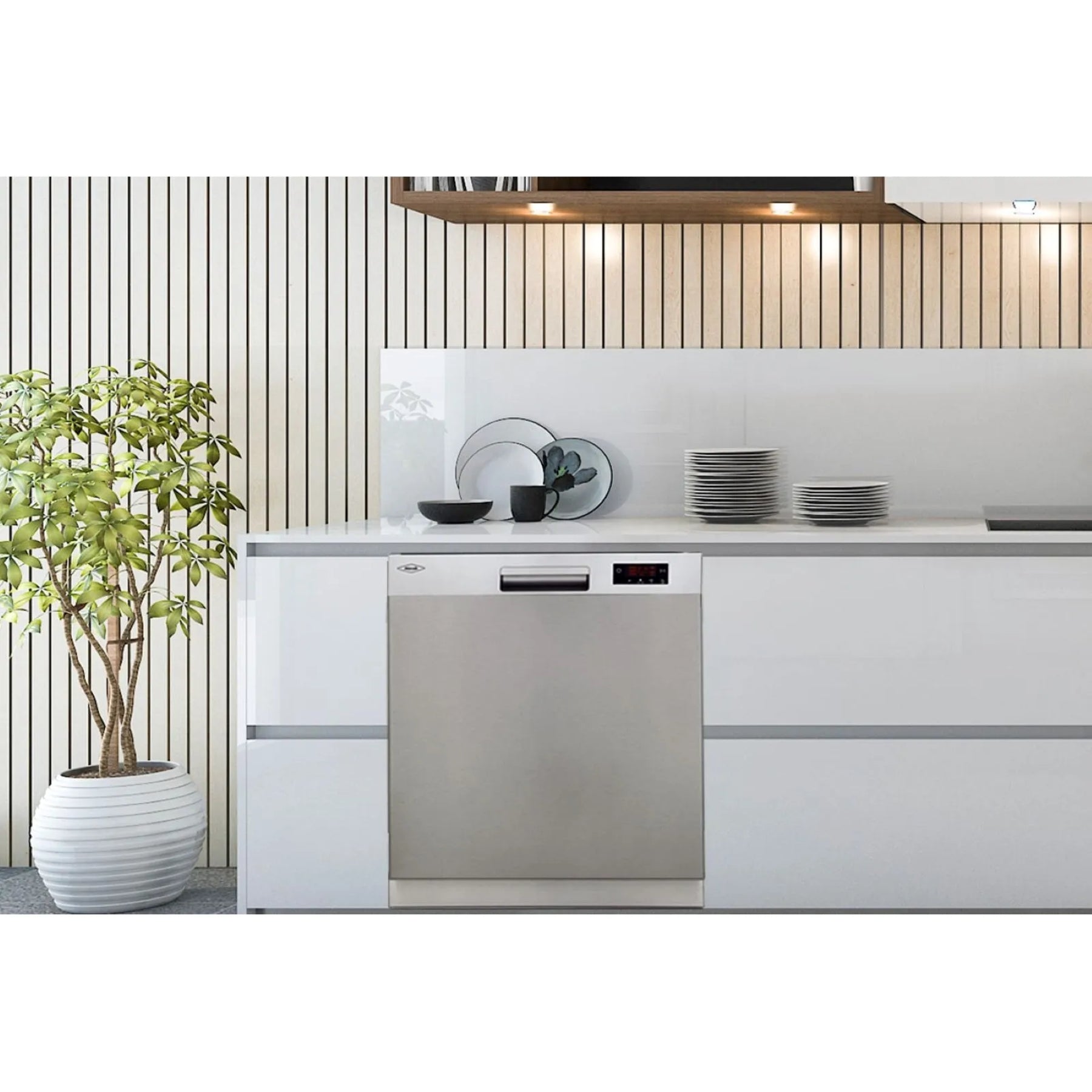Gran capacidad 14 puesto (154 piezas), comparado con el lavado tradicional ahorra hasta un 80% de agua, puedes también lavar lo que necesites con la opción de media carga, con los 5 programas de lavado (pre lavado, rápido, porcelana/cristalería, normal, ollas y sartenes. Nuestro lavaplatos está elaborado en acero inoxidable para facilitar su limpieza tiene manija integrada y su panel digital en la parte frontal es de fácil manejo *Incluye Kit de instalación. Su motor es inverter para mayor ahorro de energía.