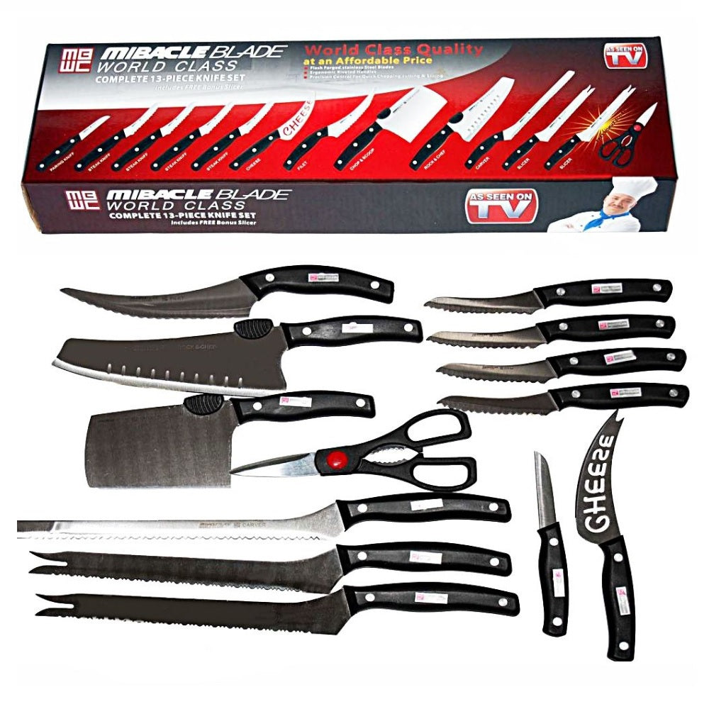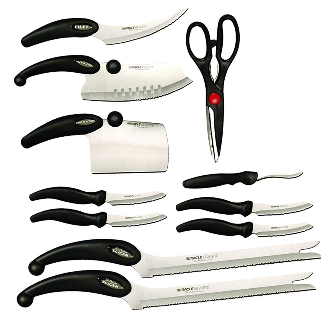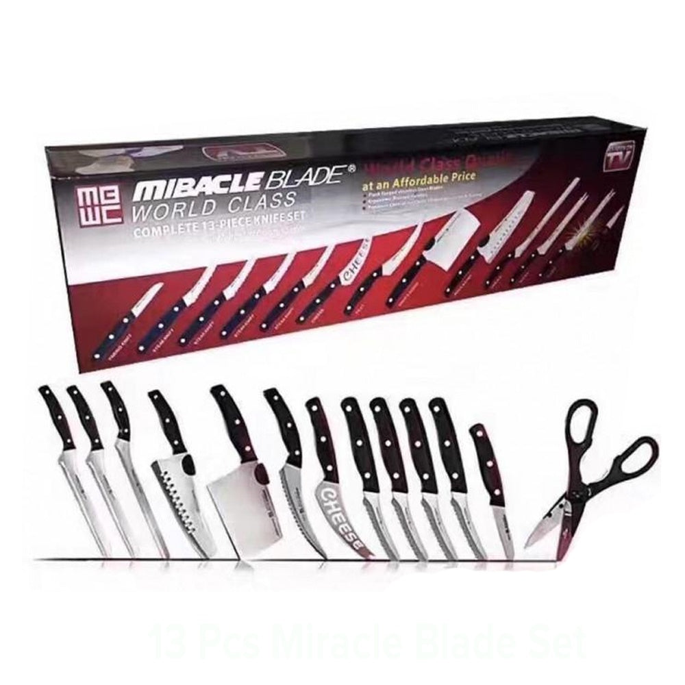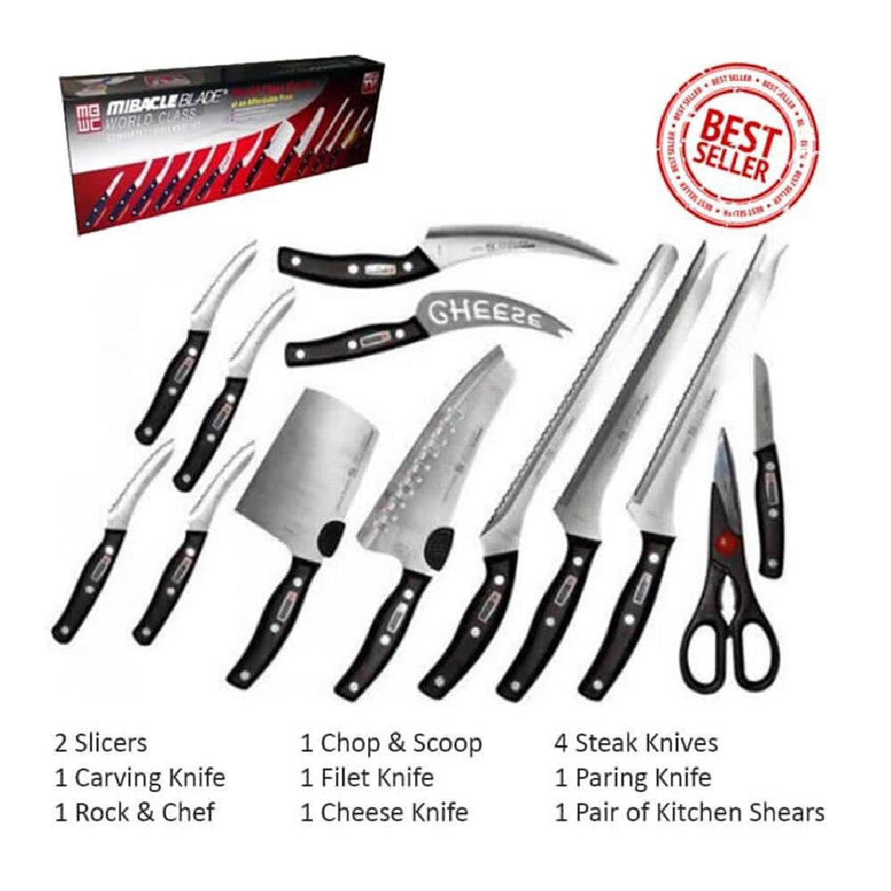 Siéntete como un chef profesional con este set completo de 12 cuchillos y 1 tijera de cocina en acero inoxidable. Elige el cuchillo correcto para cada función y facilita tu trabajo con las recetes. Perfecto para uso personal o profesional. No pierden filo y tienen un mango ergonómico que los vuelve completamente seguros en la cocina.