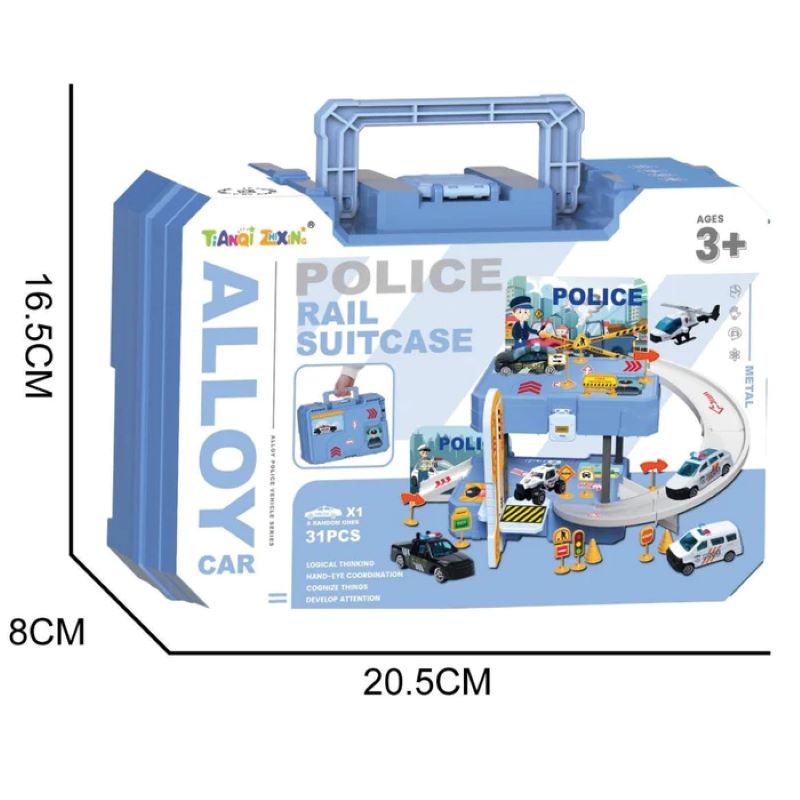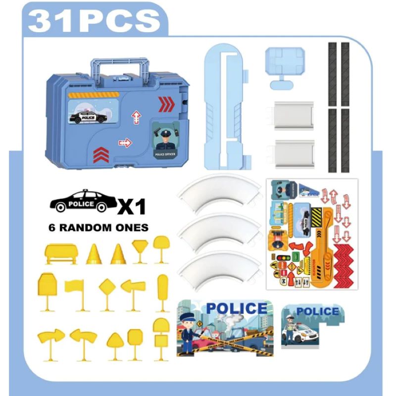 Esta estación de policía en maletín es perfecta para pequeños héroes que aman la aventura. Incluye 31 piezas, entre vehículos, señales de tránsito y una pista de autos que permite recrear emocionantes misiones de rescate y patrullaje. Su diseño portátil permite llevar la diversión a cualquier lugar.