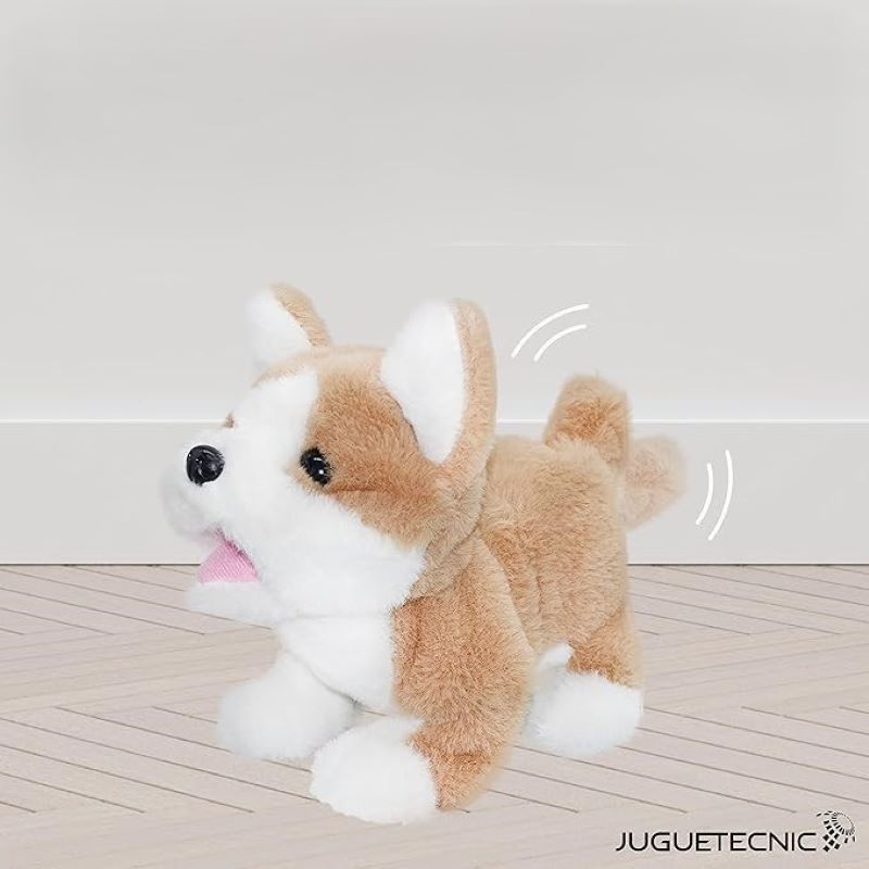 CARACTERÍSTICAS: El perrito funciona con 2 pilas AAA de 1.5V. Podrás ponerlas en el compartimento alojado en la barriguita. Las medidas son 18 x 13 x 15cm.