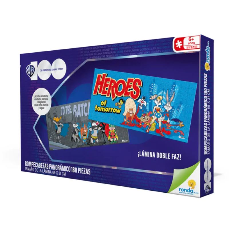 Diviértete armando y desarmando nuestro Rompecabezas X 180 Pzas Warner 100, doble faz, con estas dos increíbles imágenes en una sola lamina.