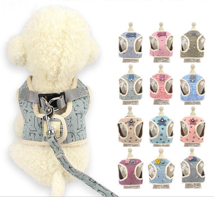 Elegante arnés tipo chaleco para perro o gato con correa.