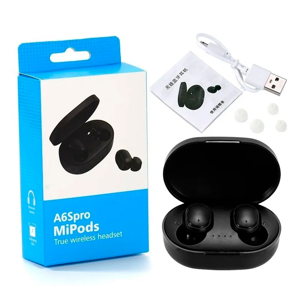 Mini Audifonos A6S MIPODS Bluetooth 5.0 con caja de carga. Diseño ultra liviano e invisible en la oreja. Puede disfrutar de su música sin cables, perfecto para deportes al aire libre, correr, trotar, hacer ejercicio en el gimnasio, mirar televisión, conducir, etc. A prueba de polvo y resistente al agua IPX5. Compatibilidad inteligente: admite todos los teléfonos móviles Bluetooth, tabletas, computadoras portátiles, canto, música QQ, películas, todos los teléfonos móviles.
