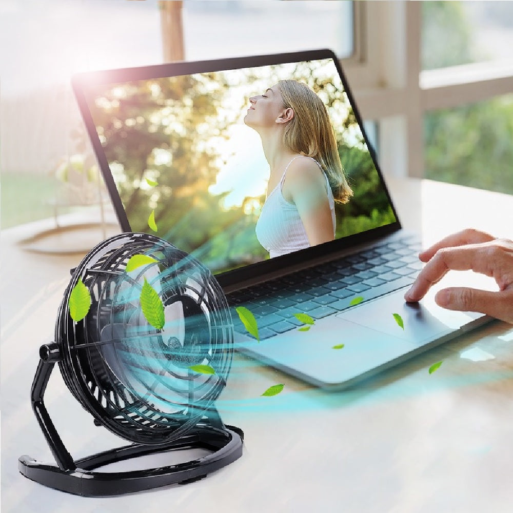 Mini ventilador USB. Silencioso y eficiente con 4 aspas. Esta revolucionaria tecnología hace que la energía eólica fluya más suavemente y más rápido. Al correr, Solo escuchará un susurro lo que lo hace muy adecuado para su uso en el trabajo, estudio o durante la noche.