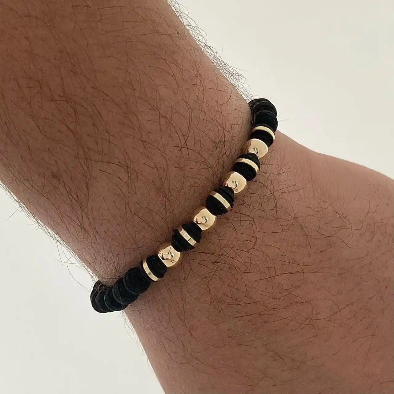 Manilla de oro laminado italiano 18K y neopreno balín liso RF: M9