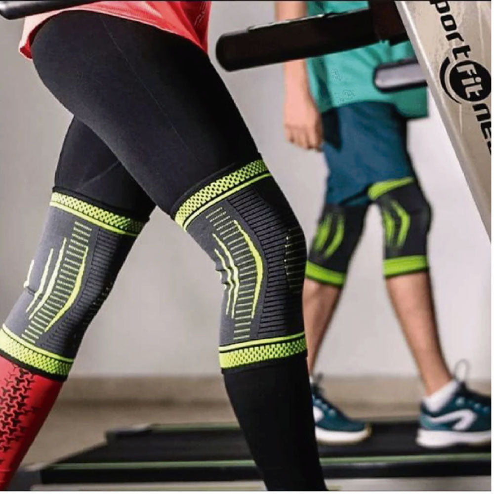 Rodillera de protección y deportiva ortopédica con correa ajustable para minimiza el impacto y la vibración de los músculos permitiendo disfrutar de deportes exigentes como baloncesto, fútbol, voleibol, tenis, levantamiento de pesas y más.