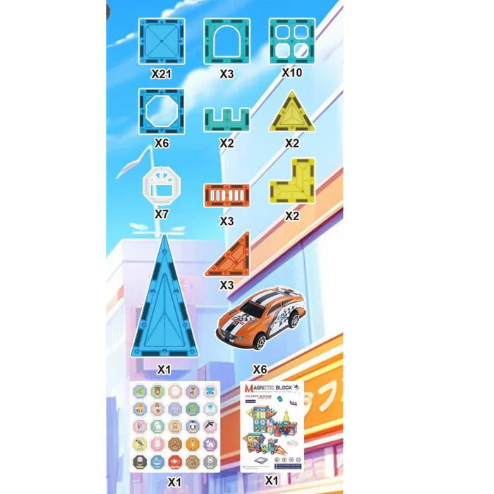 Este emocionante set de construcción magnético de 66 piezas permite a los niños crear sus propias pistas y estructuras para autos. Ideal para fomentar la creatividad y el desarrollo de habilidades motrices, este juguete les brinda la oportunidad de experimentar con el diseño y la construcción mientras observan cómo sus autos recorren sus creaciones.